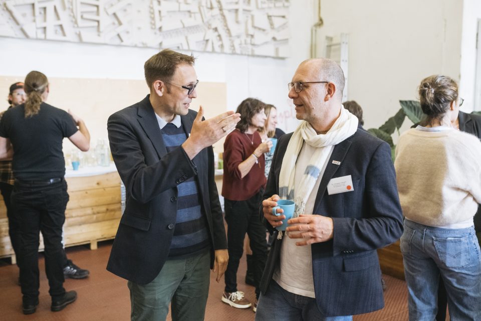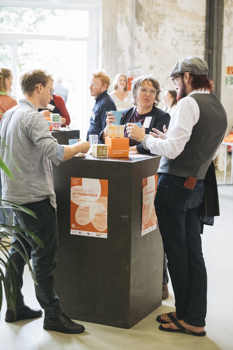 „Gerade hier, mitten im Revier, sehen sich die Hochschulen für angewandte Wissenschaften als engagierte Akteur*innen des Wandels“, begrüßte Prof. Dr. Franz Vogler von der FH Dortmund die rund 60 Teilnehmenden in der Werkhalle des Union-Gewerbehofs – und die wunderschöne alte Stahlhalle verlieh dem Oberthema Nachhaltigkeit nicht nur eine durchaus angemessene Gravität, sondern diente mit ihrer pittoresken Ambivalenz von verschwenderischer Stahlzeitalter-Architektur und zeitgemäßer Nutzung mit Video-Hightech und veganem Imbiss auch als pointiertes Beispiel für den erwähnten Wandel. „Nachhaltigkeit“, betonte Vogler, Prorektor für Nachhaltigkeit, „ist eine Aufgabe, die uns alle betrifft.“ Deswegen sei dieser Transfer-Tag als Plattform des Austauschs zwischen Wissenschaft und Zivilgesellschaft so wichtig.